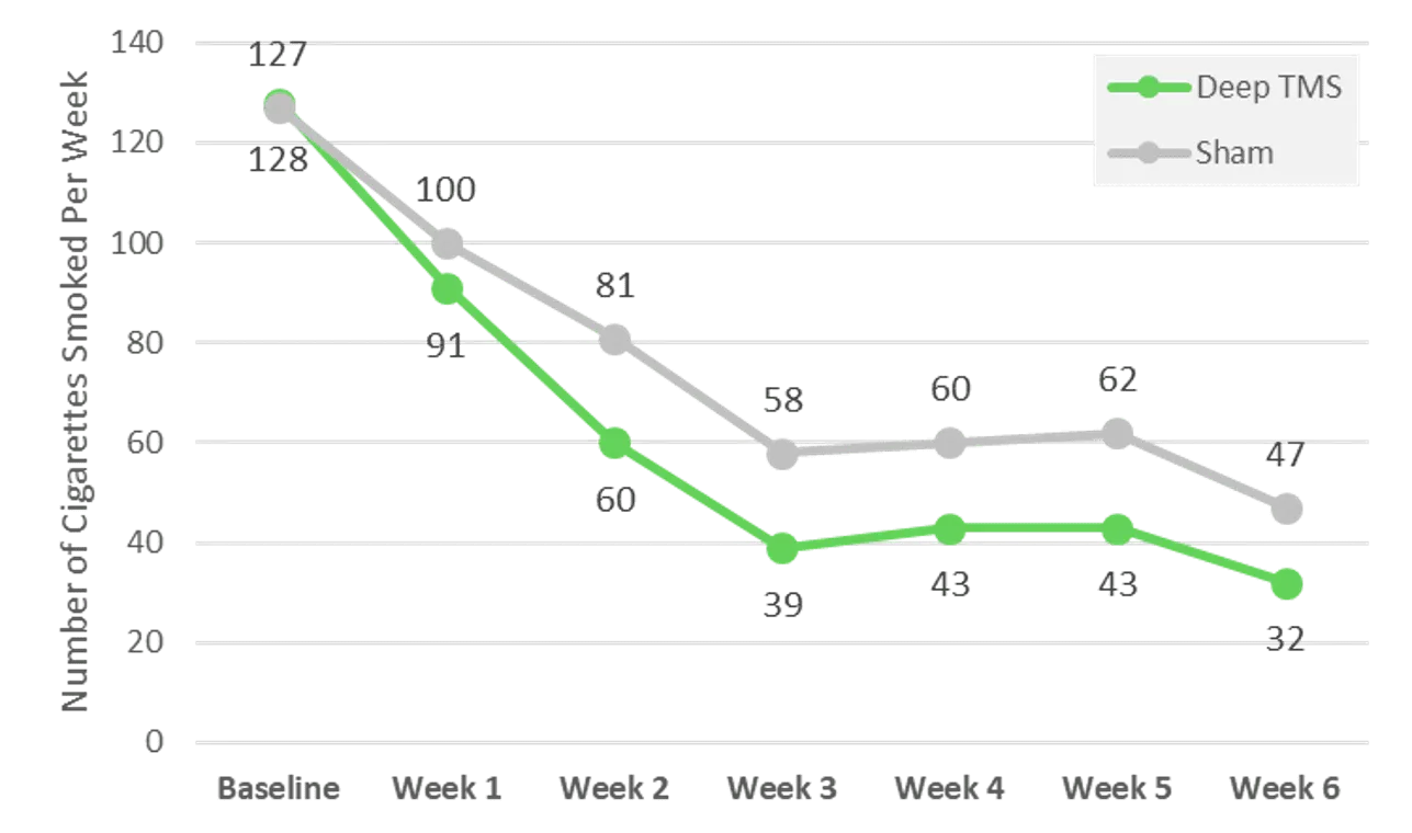 From ~128 cigarettes/week to just 32 after 6 weeks of Deep TMS